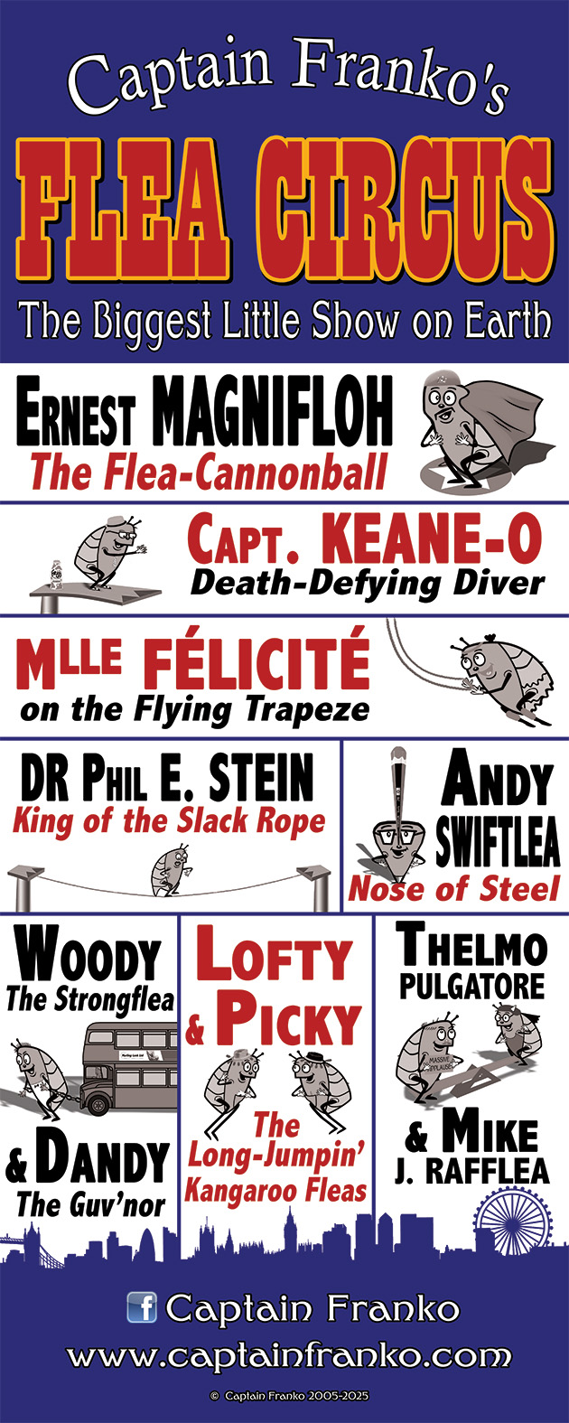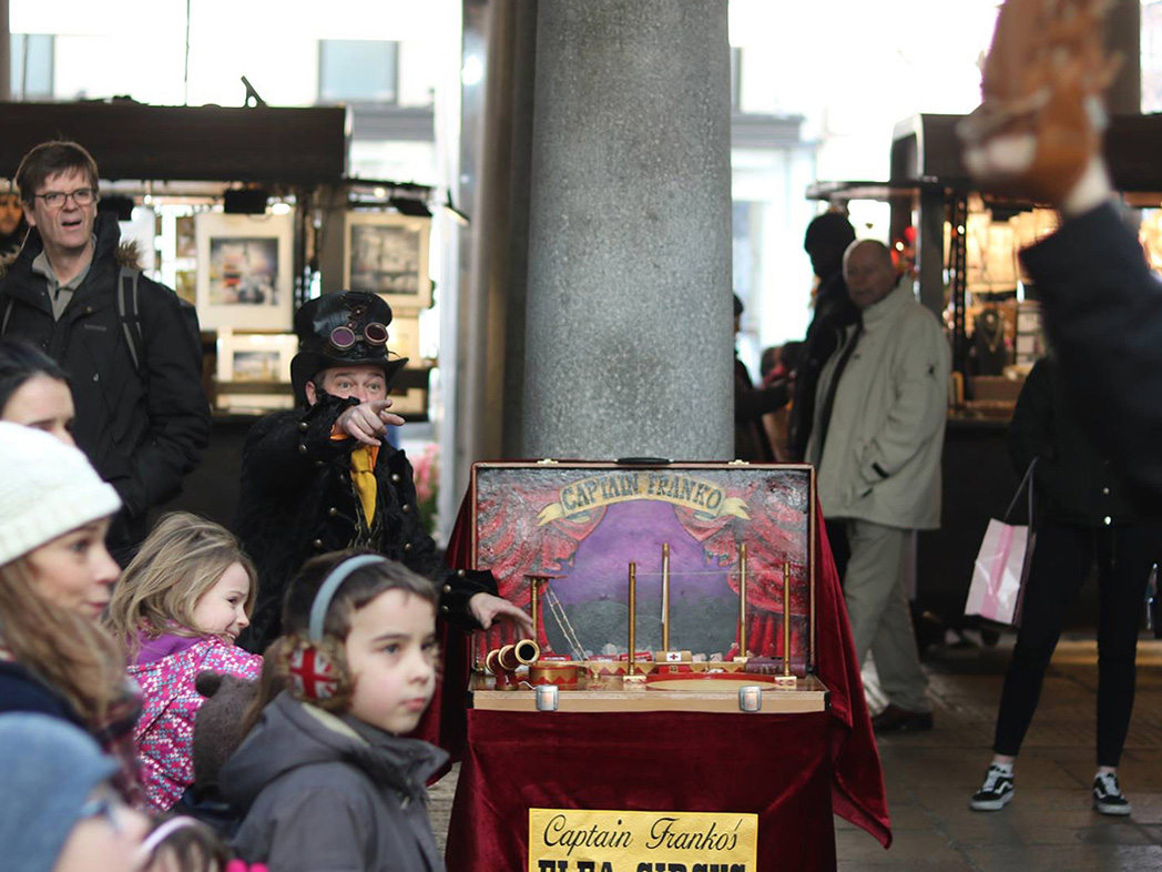 Our Flea Circus is a joy to behold. A 30-minute show featuring mountains of audience interaction, lots of silly humour & a stunningly beautiful hand-made Flea Circus Arena. The theme is continued through to the costume, in a Victorian / steam-punk style. From the humour & the spectacle, through to the intricate detail of its construction, there is something for everyone to enjoy. Not only do children get lost in the imaginary world of the fleas; but the adults end up following them in for half an hour of pure escapism.